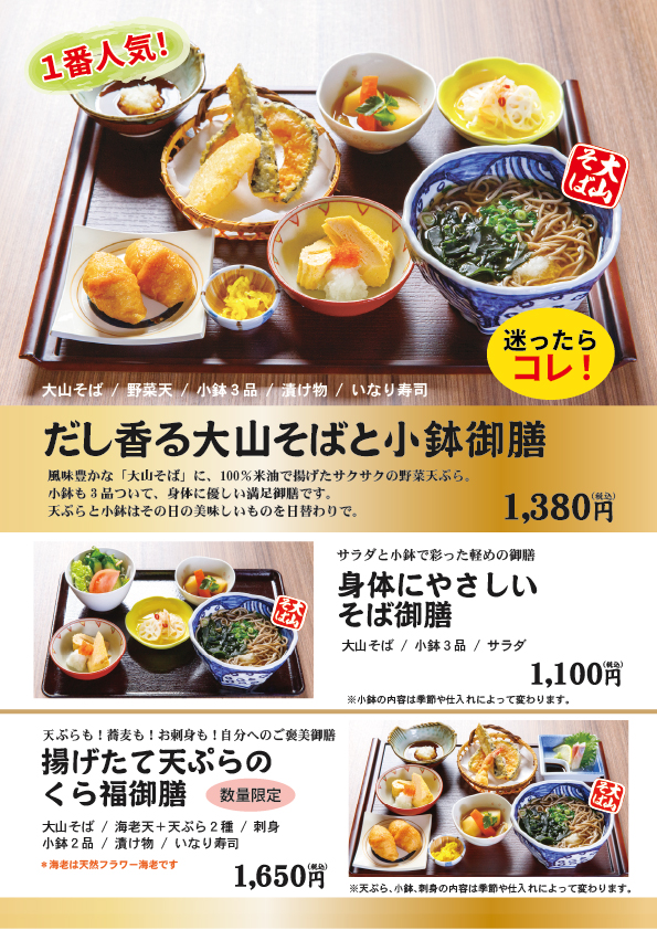 【だし香る大山そばと小鉢御膳】1,380円
